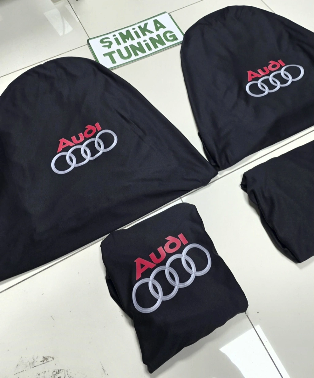AUDİ SİYAH OTO SERVİS KILIFI ÖN ARKA KILIF 4 PARÇA(ARKA 2 PARCA LOGOLU) 1.KALİTE PENYE ESNEK LİKRALI KUMAŞ ÜNİVERSAL YIKANABİLİR