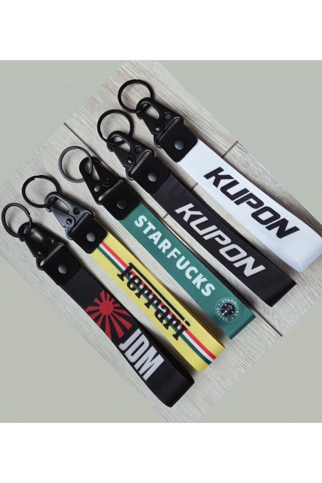 ○ Ürünümüz yüksek çözünürlüklü termal dijital baskı tekniği ile kumaştan vegüçlü metal alaşımdan yapılmıştır ○ Metal alasımlar bova ile kaplanmıstır.; • Anahtarlık metal aksamı ile birlikte 19 cm uzunlukta 2.5 cm genişliktedir • Her bir anahtarlık, anahtarlarınıza veva sırt cantanıza takmay kolaylastıran sačlam bir metal halka ile birlikte gelir Anahtarlıklarımız dayanıklı kumastan ve $ık metal aksamdan üretilmistir.; • Araba anahtarlarınız.; ev anahtarlarınız ve ofis anahtarlarınız çinkullanımı kolaydır Ürün Uzunluk: 19cm Baskı Turu :Dijital Cif Taraflı Bask Malzeme türü: kord :Dar Dokuma / Polivester Kumas Metal kanca Sivah / Firin Bova Metal Halka 30 mm capli
