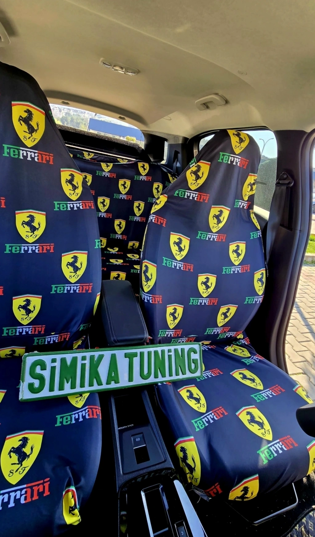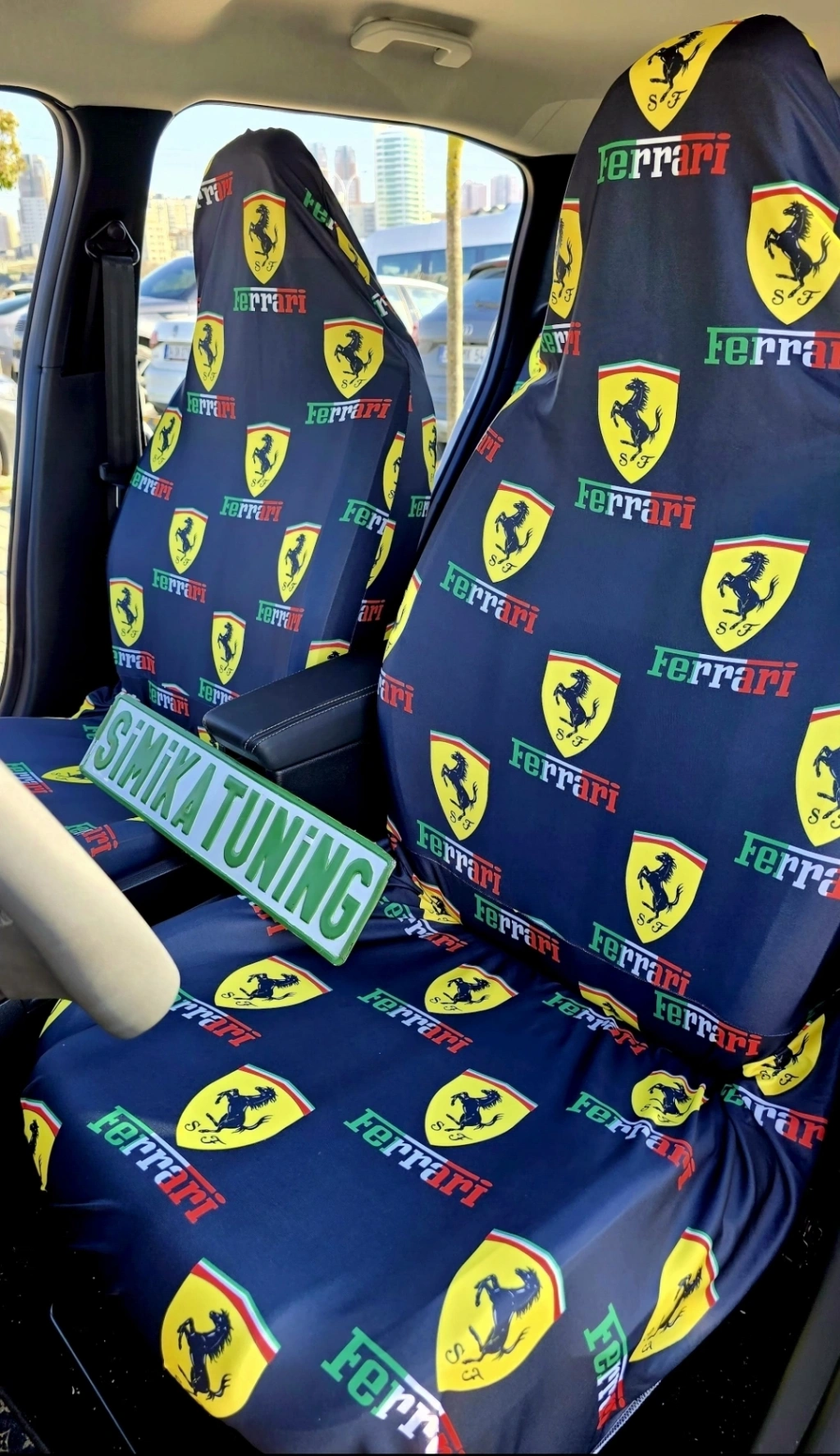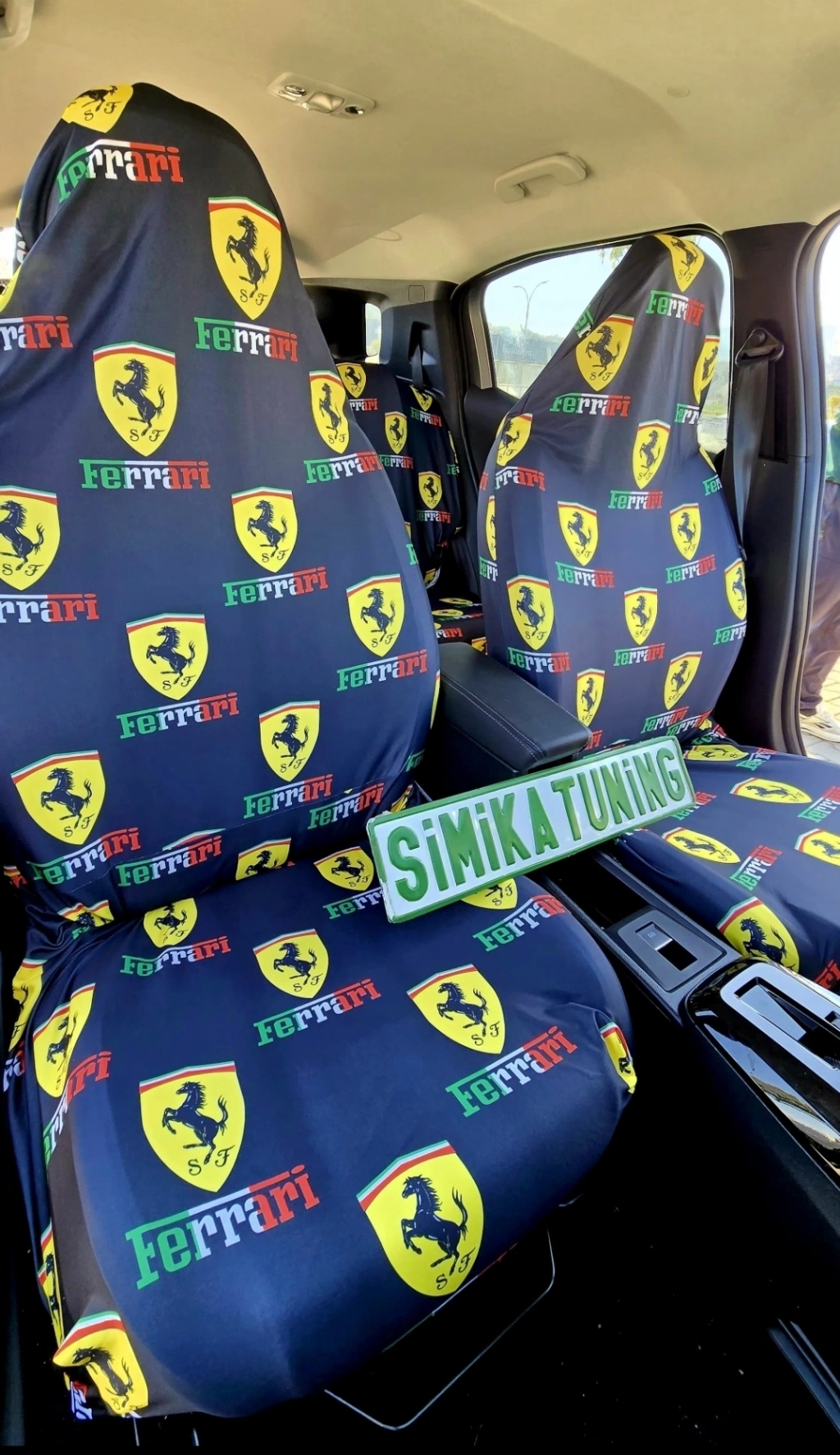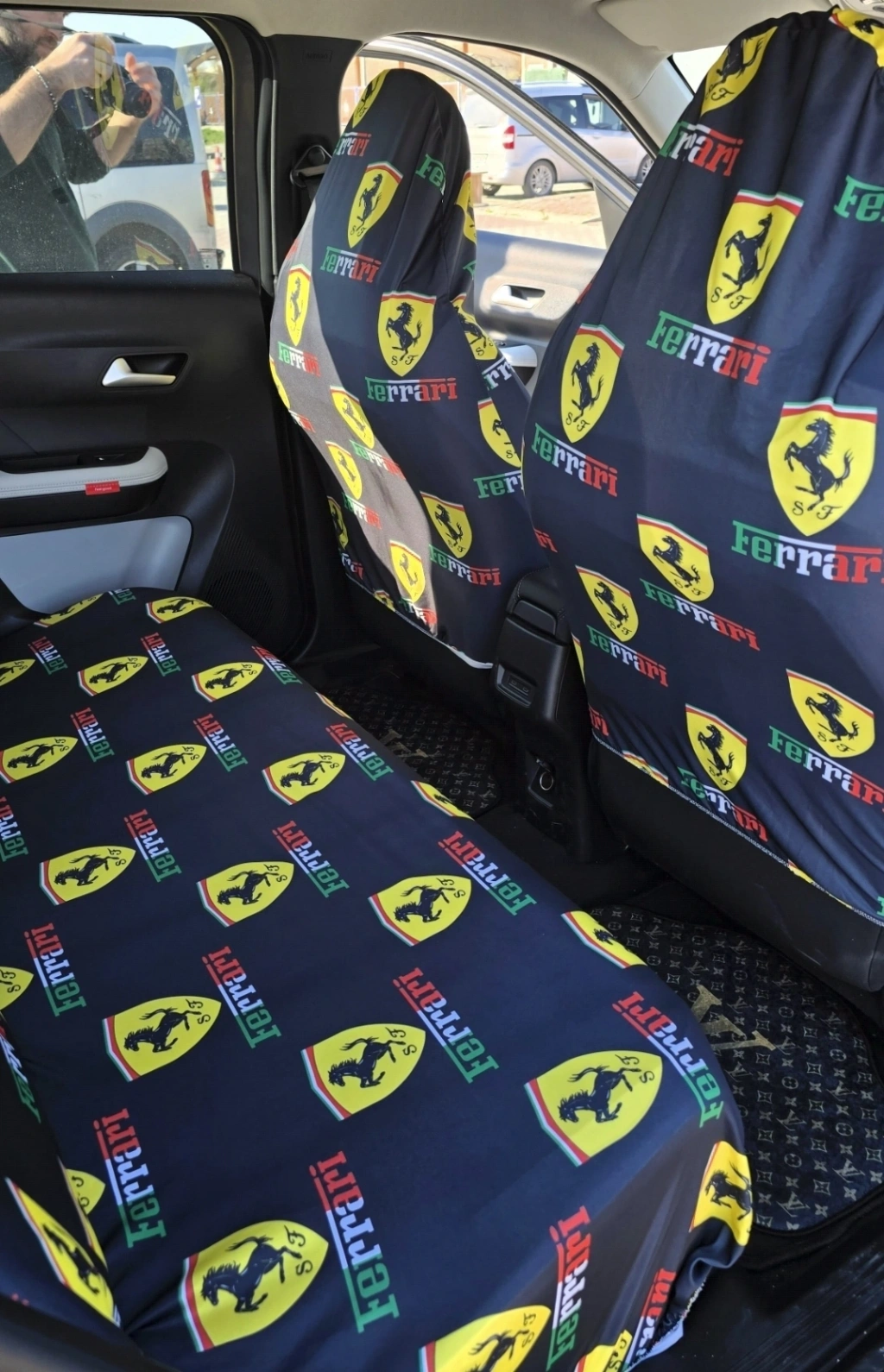 FERRARİ DEKOR OTOMOBİL 3D BASKILI SERVİS KILIFI ÖN VE ARKA 4PARÇA TAKIM 1.KALİTE LİKRALİ PENYE YIKANABİLİR HER ARACA UYUMLU