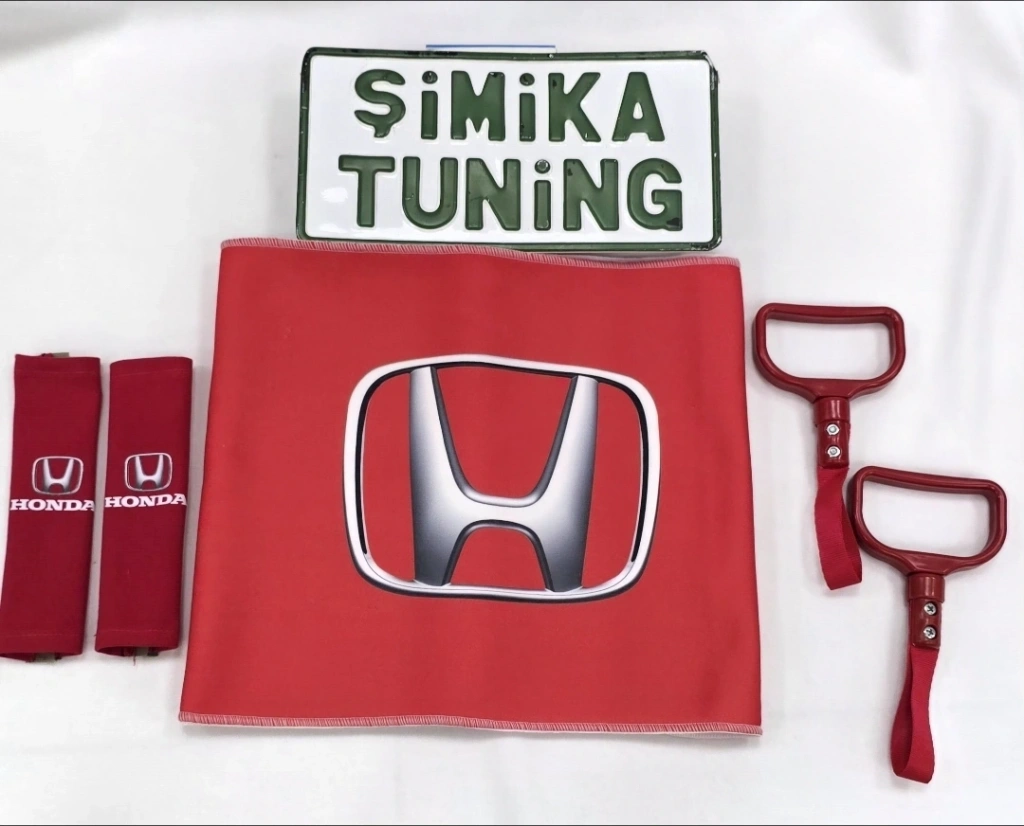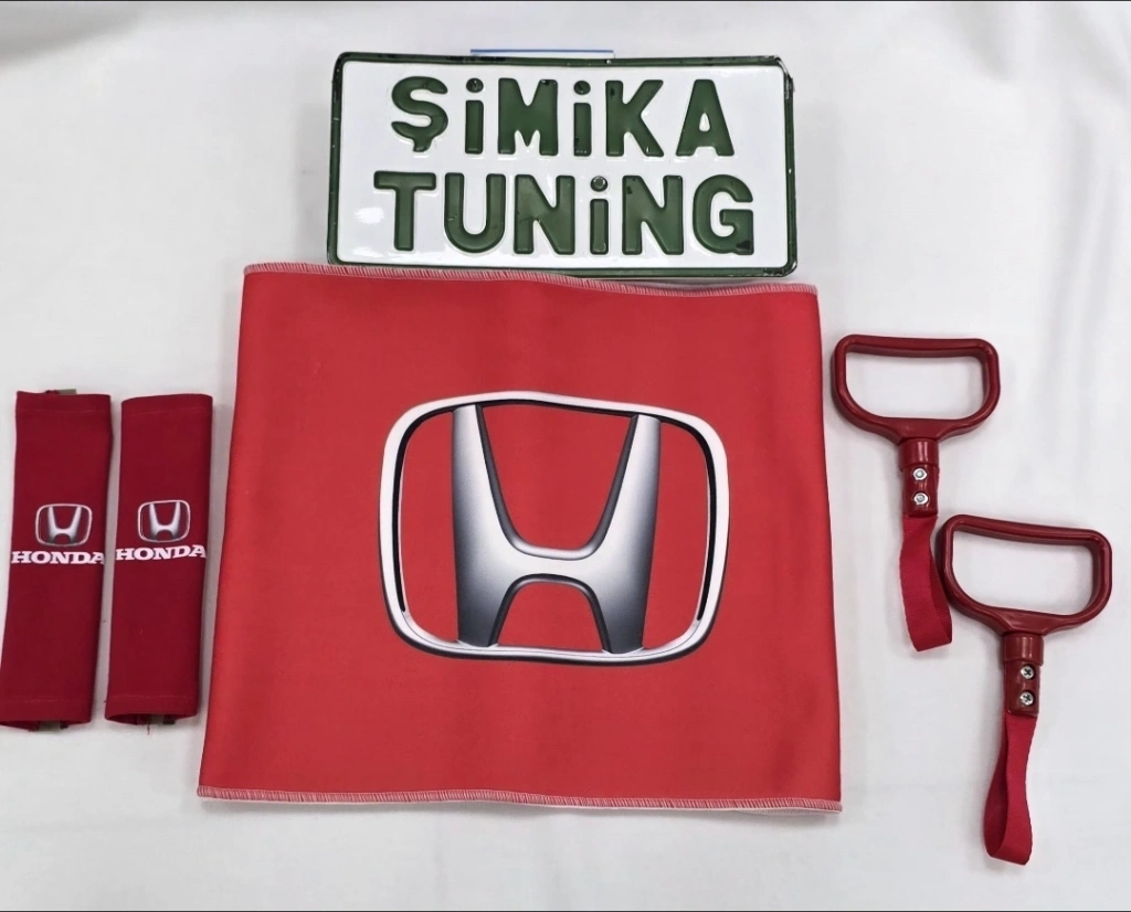 HONDA KIRMIZI OTOMOBİL TORPİDO HAVLUSU VE 2'Lİ KEMER KILIFI VE 2'Lİ ARAÇ TUTAMAÇI
