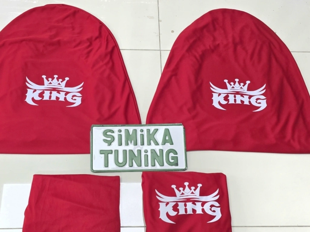 KRAL TACI LOGOLU KIRMIZI OTO SERVİS KILIFI ÖN VE ARKA 4PARÇA TAKIM(ARKA LOGOLU)1.KALİTE PENYE ESNEK KUMAŞ