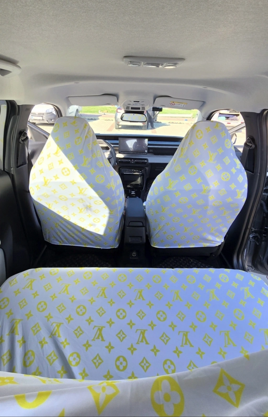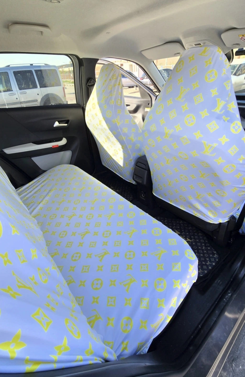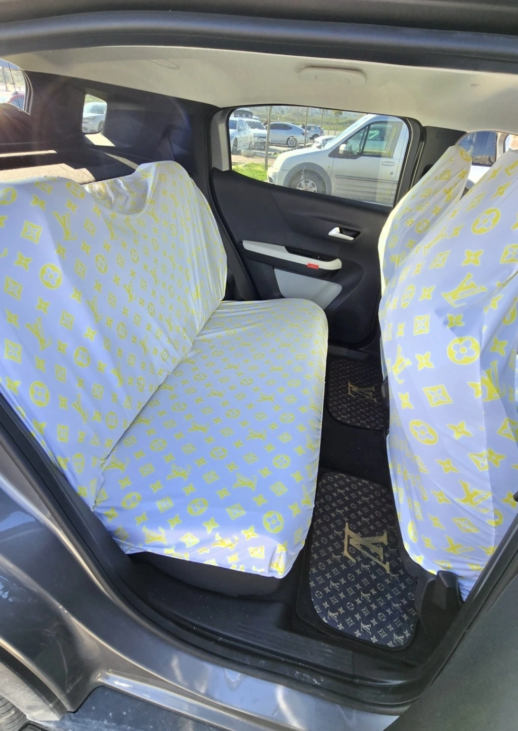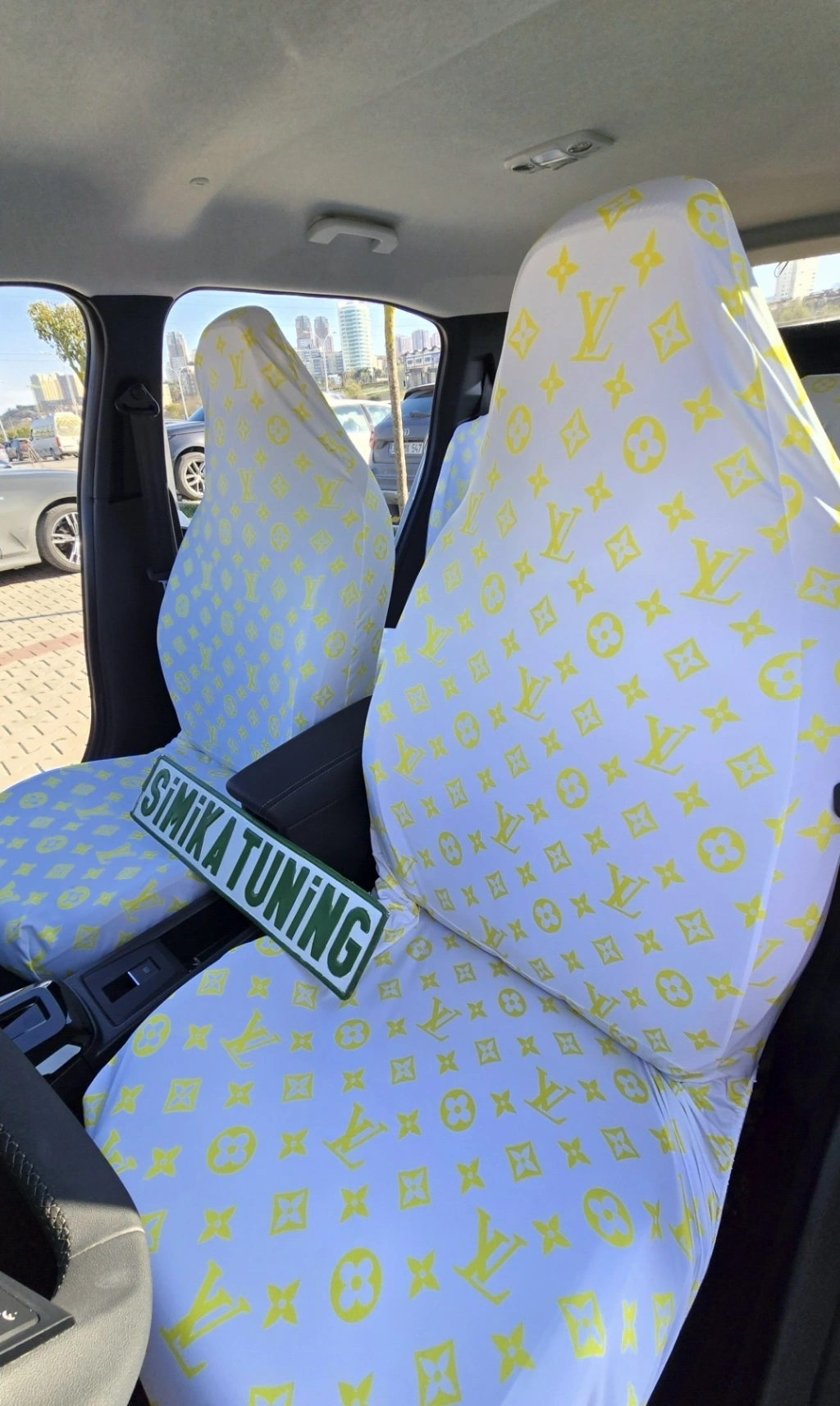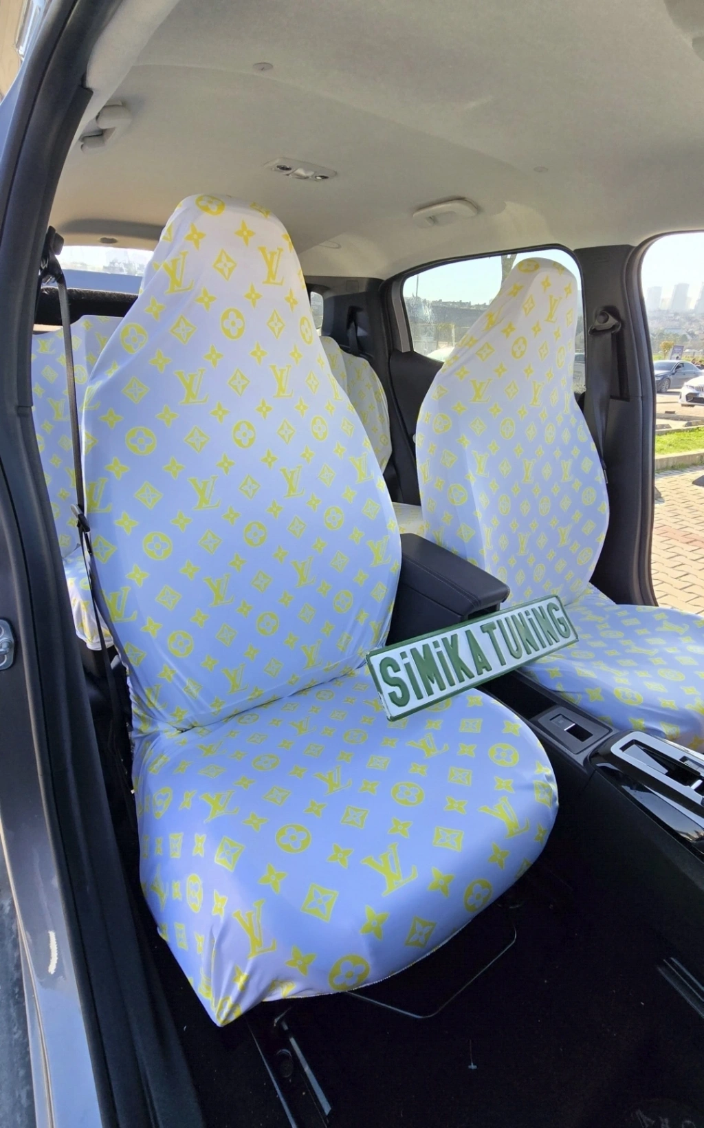 LV DESEN BEYAZ-SARI DESEN SERVİS KILIFI ÖN VE ARKA 4PARÇA TAKIM 1.KALİTE LİKRALİ PENYE YIKANABİLİR HER ARACA UYUMLU