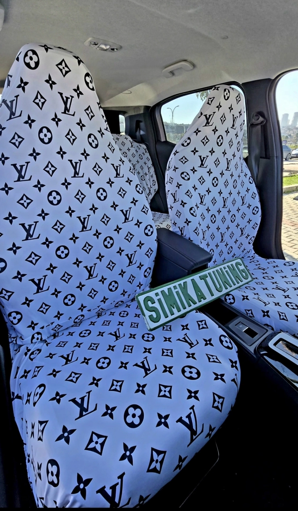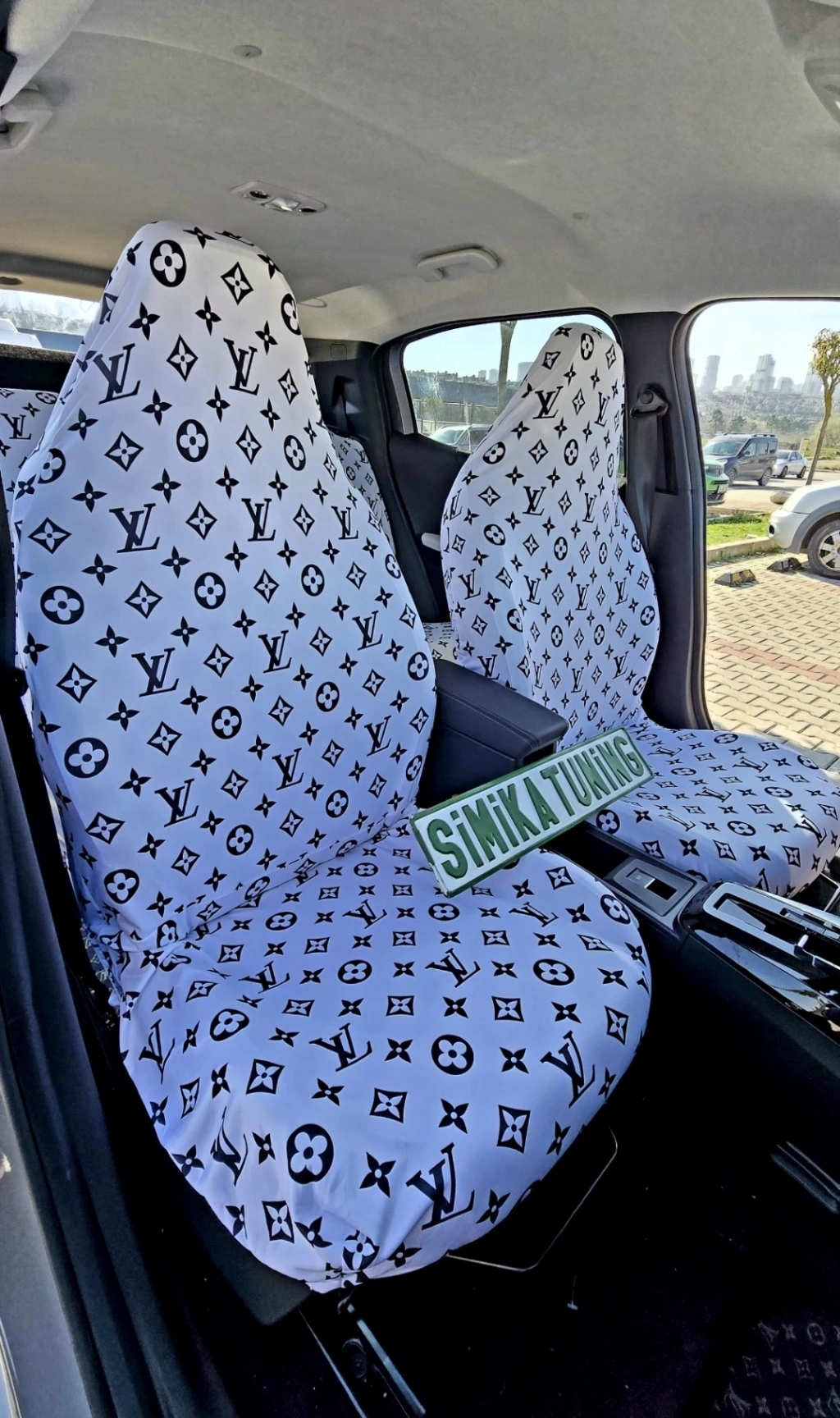 LV XL BEYAZ DESEN OTOMOBİL 3D BASKILI SERVİS KILIFI ÖN VE ARKA 4PARÇA TAKIM 1.KALİTE LİKRALİ PENYE YIKANABİLİR