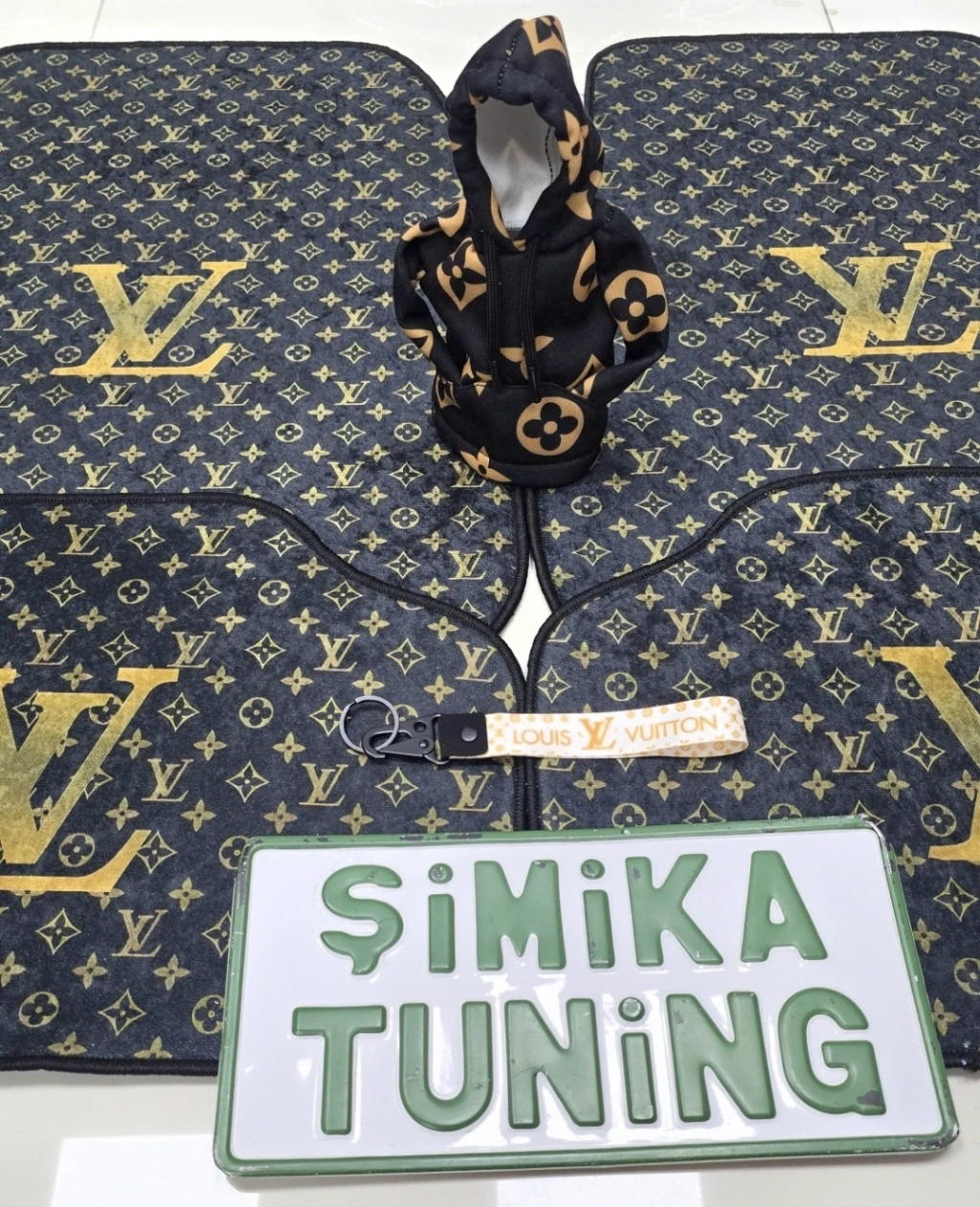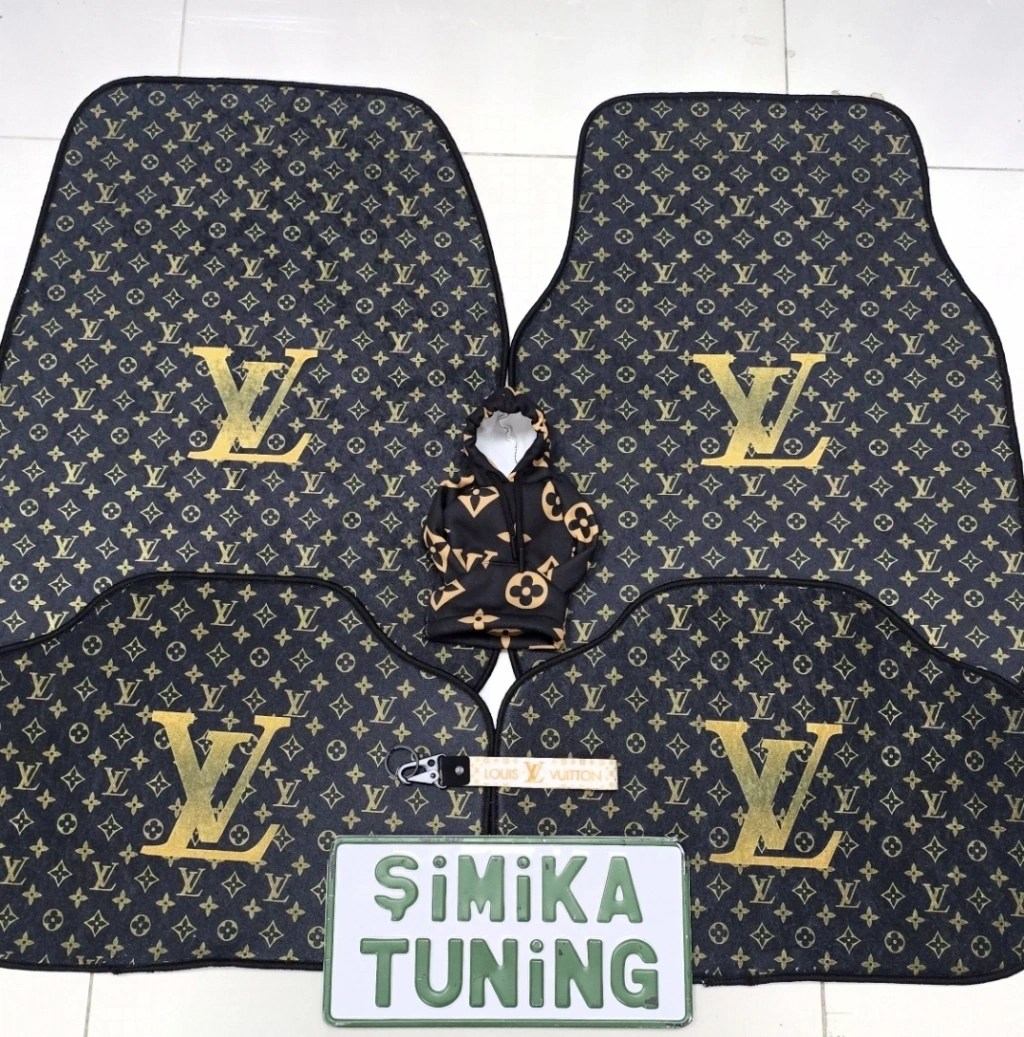 LV SİYAH DEKOR OTO HALI PASPAS ÜNİVERSAL HER ARACA UYUMLU(KUMAŞ ANAHTARLIK HEDIYELI)