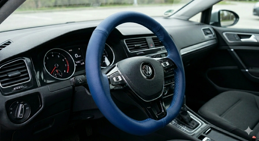 OTOMOBİL DÜZ SUNİ DERİ MAVİ (RENK MAVI İPLİ) DİKMELİ DİREKSİYON KILIFI