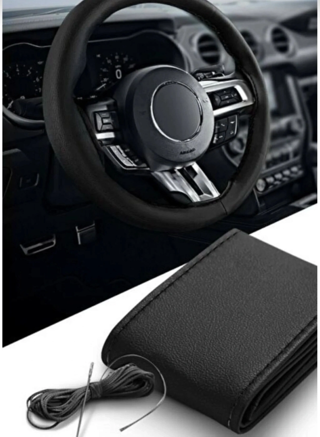 OTOMOBİL SIYAH SUNİ DERİ (SİYAH IPLI) DİKMELİ DİREKSİYON KILIFI (RAGLE HEDİYELİ)